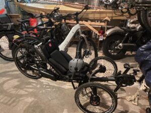 The recumbent is from the Czech Republic and uses a Samsung electric system which is pretty nice. I have a Specialized Vado 5 which has all the bells and whistles and is exceptionally smooth operating. The Evelo Omega is similar to the Specialized for a lot less but is a little less smooth but still an exceptional ride. All three are outfitted with Enviolo automatic shifting hubs which I think helps optimize the electricity usage. Each can go about 50 miles on a charge depending on how much assist you use.
